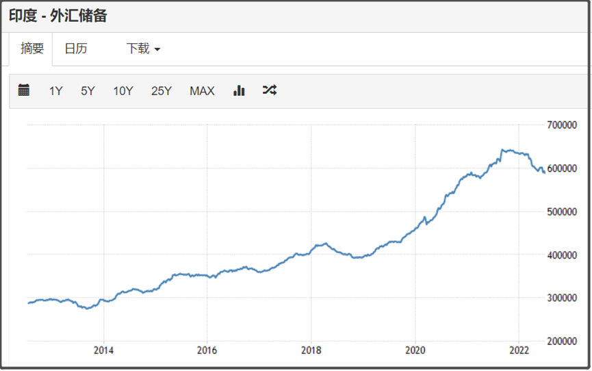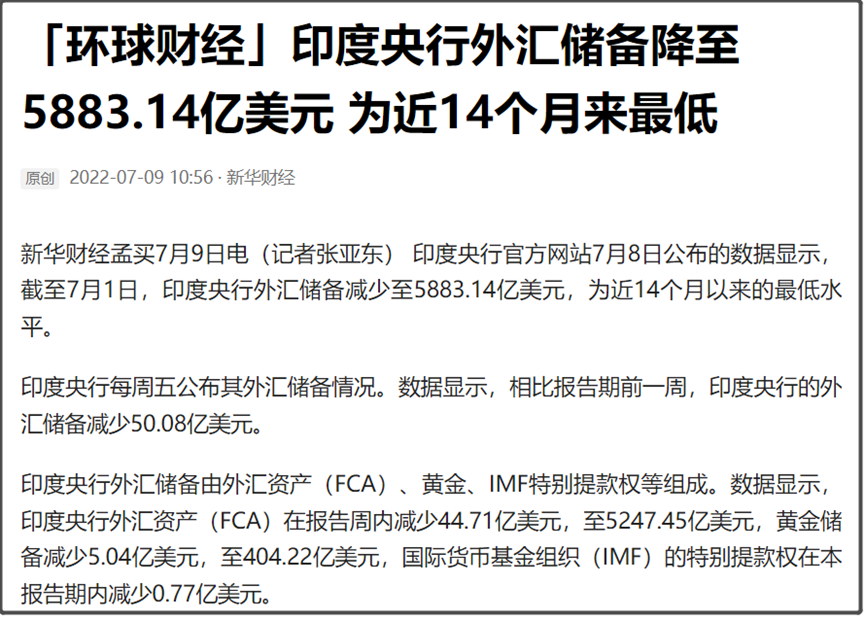 最关键是,这样的贬值过程,是伴随着印度外汇储备下降的。