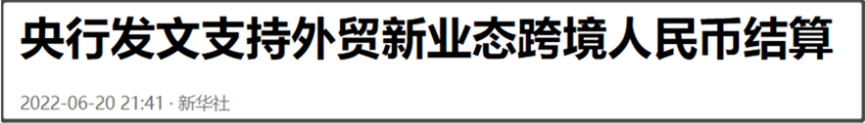 我们在6月20日发文支持外贸新业态跨境人民币结算。