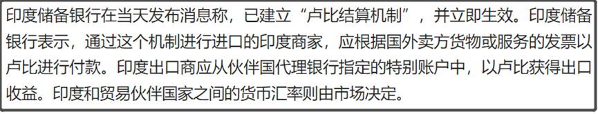 只是印度央行推出一个新的结算机制,印度的进出口商可以选择这个结算机制,使用印度卢比进行结算。