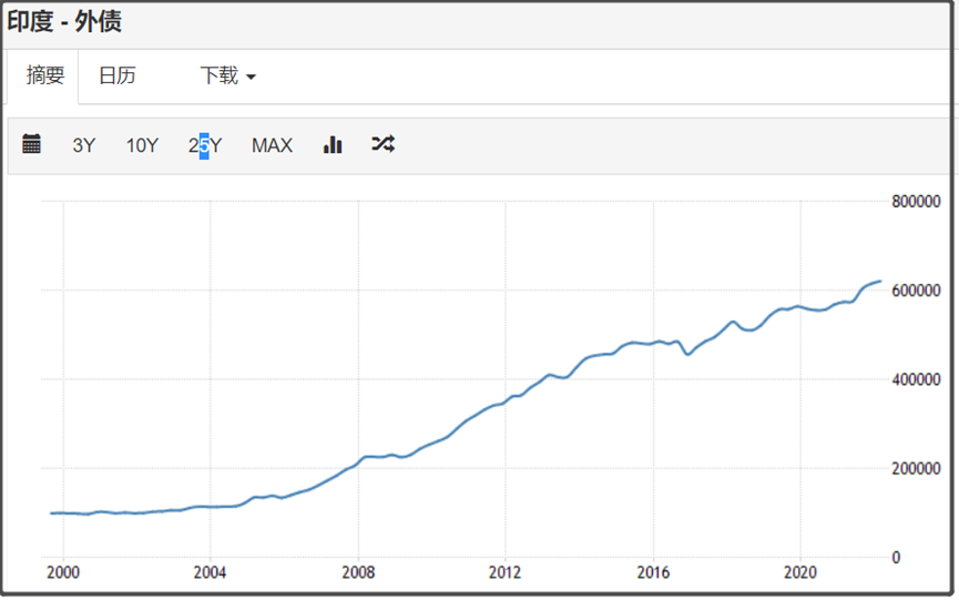 目前印度外债总额是达到了6200亿美元,已经超过其外汇储备规模。