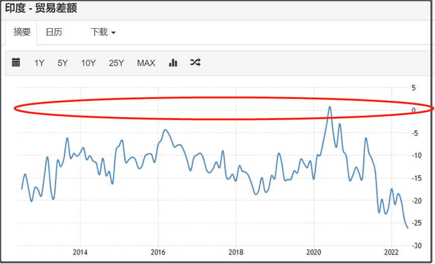 这个可能有人觉得下降也不是很多,但需要注意的是,印度是一个长期贸易逆差的国家。