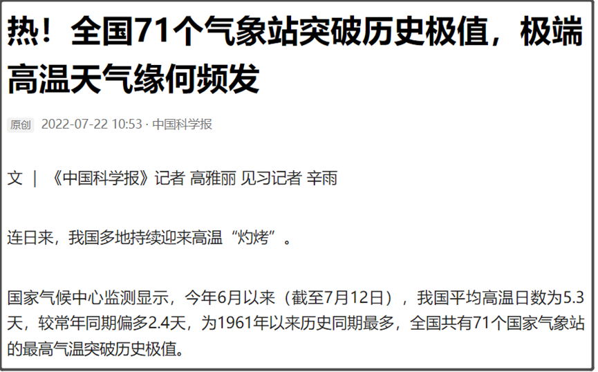 今年全国已经有71个国家气象站的最高气温突破了历史极值。