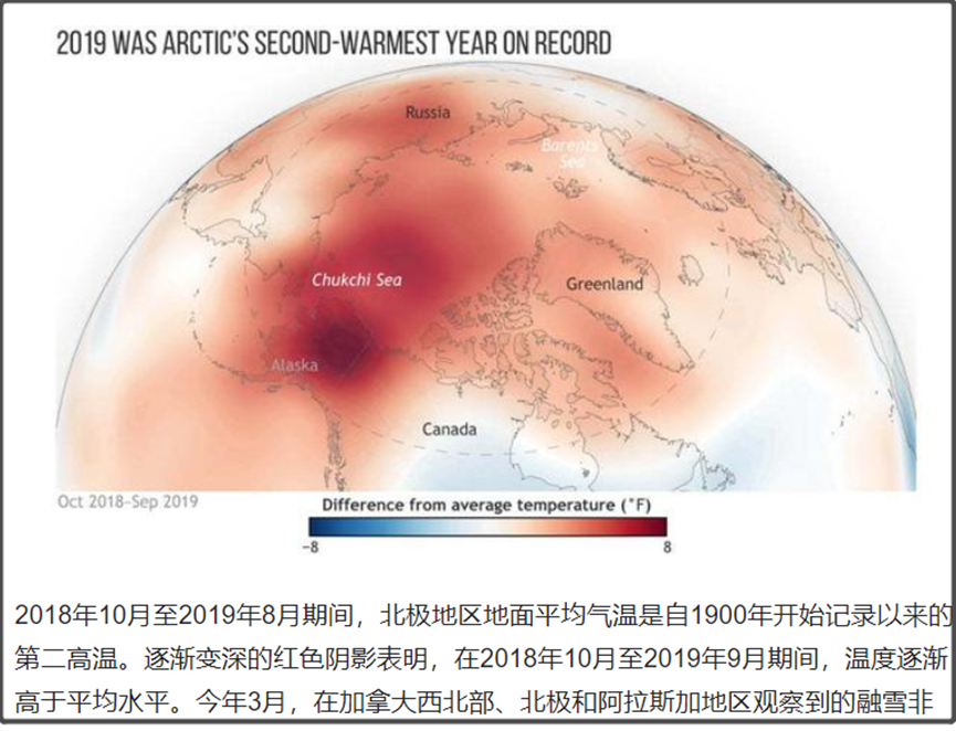比如,从2018年开始,北极圈气温就开始高于平均气温水平。