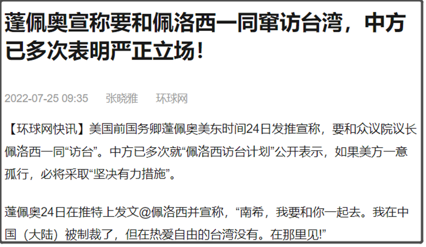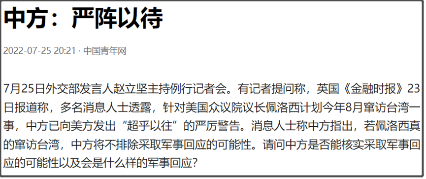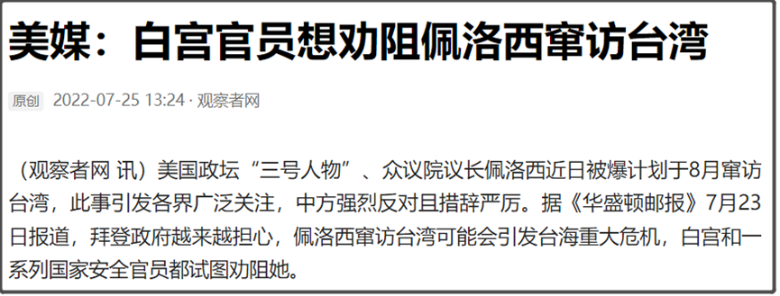 一个例子,最近美国那边还在热炒佩洛西窜访的事情。