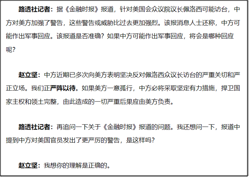 如果佩洛西敢来,我们肯定是奉陪到底。