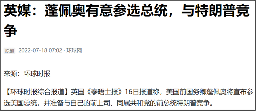 首先蓬佩奥在今年离奇减肥之后,最近开始表露出想要竞选两年后美国总统的意思。