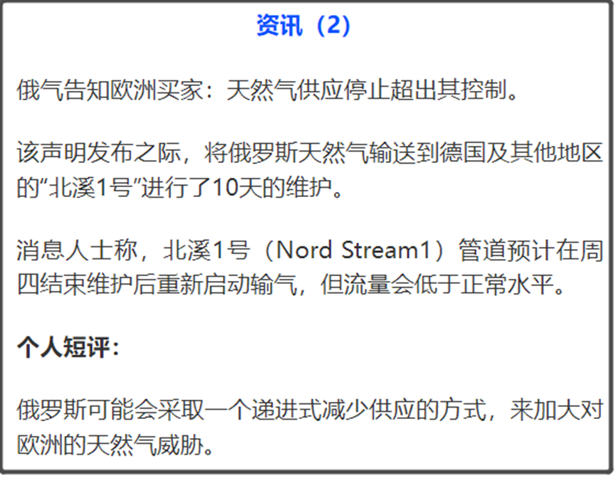 当时我认为,俄罗斯可能会采取一个递进式减少供应的方式,来逐渐加大对欧洲的天然气断供威胁。