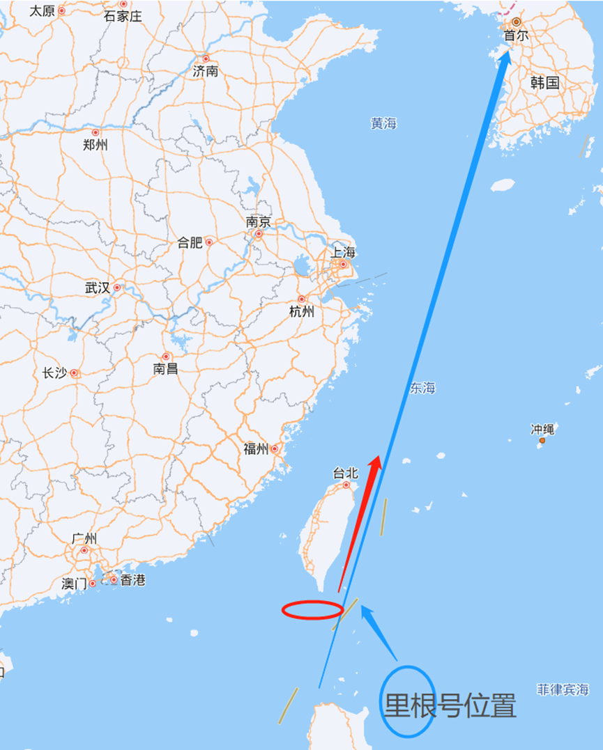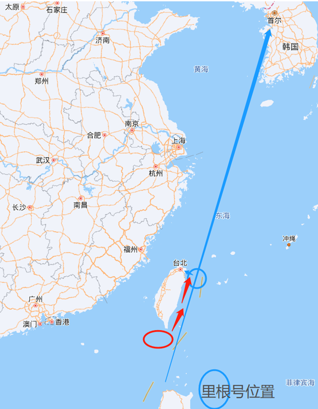 可以看到,目前里根号运动到的这个菲律宾海域,恰好是佩洛西明后天飞机可能经过的区域。