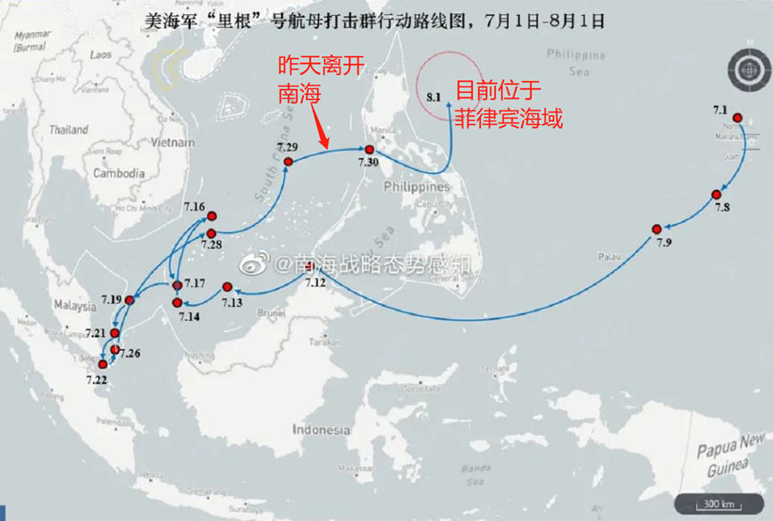 值得注意的是,里根号航母战斗群,在昨天已经离开南海,前往菲律宾海域。