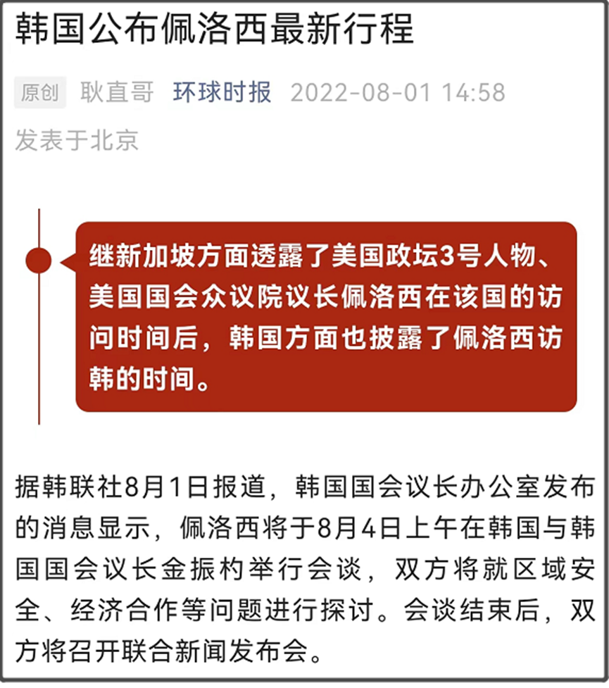 这意味着,佩洛西很大可能是8月3日晚上就要抵达韩国。