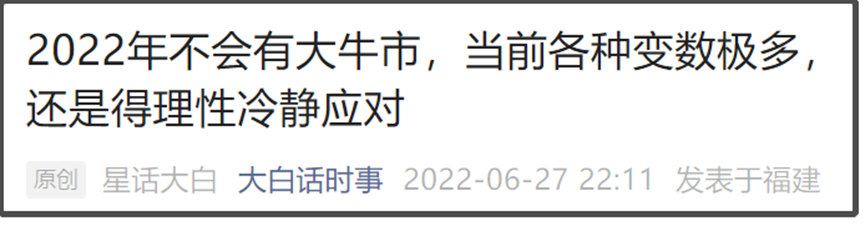 A股的风险是一个月前早就能预见到的,我在6月27日的文章里,分析2022年为何不会有大牛市时, 第三个理由都明确写了要提防重大地缘风险,当时这篇文章的视频在抖音上还被一些路人骂。