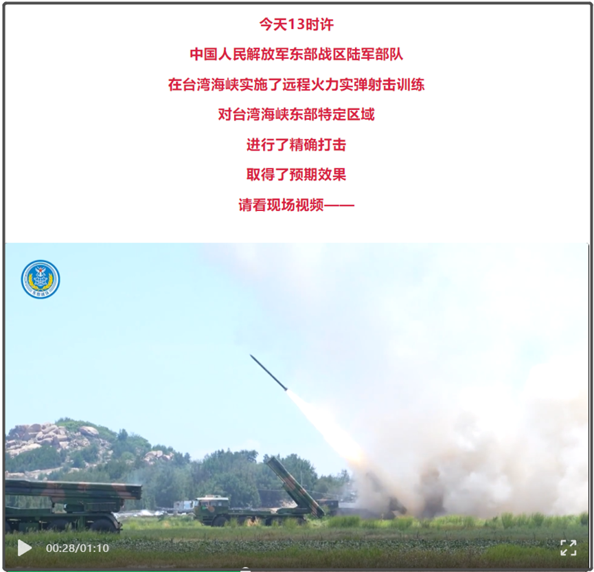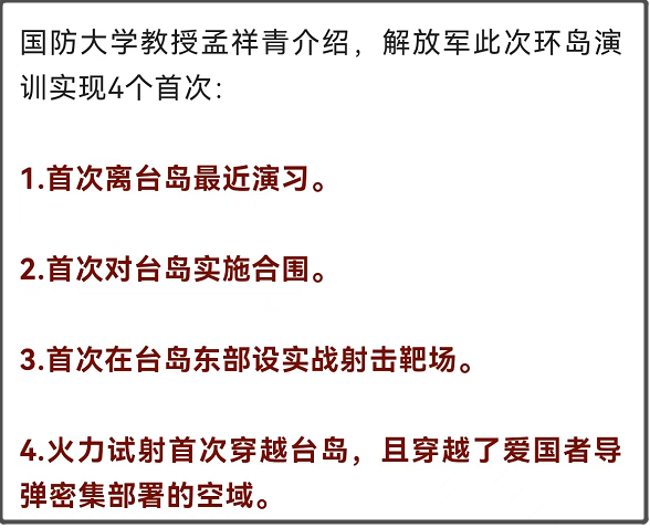 所以,这是我们一次规模空前的实战化联合演训,从陆军远程火力,到火箭军的常规导弹发射,还有我们的空军和海军,是全方位立体的大规模演训。