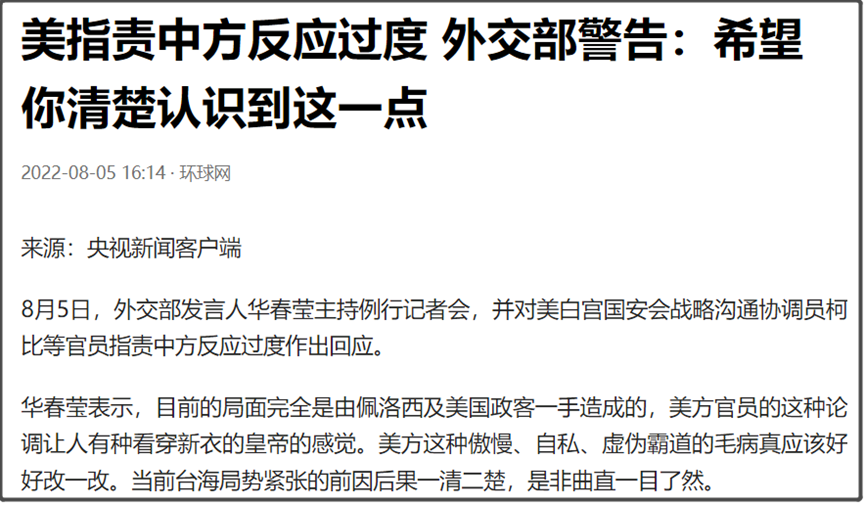 所以美国方面今天就跑出来指责我们“反应过度”,对此我们也已经做了反驳。