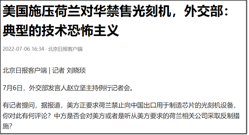 但这次,美国是要求荷兰禁止出口所有光刻机给我们,也就是连生产14纳米的DUV光刻机都设限,美国这已经是完全不给退路。
