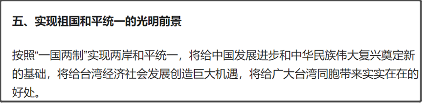 此外,“和平统一、一国两制”仍然是本次白皮书里强调的基本方针。