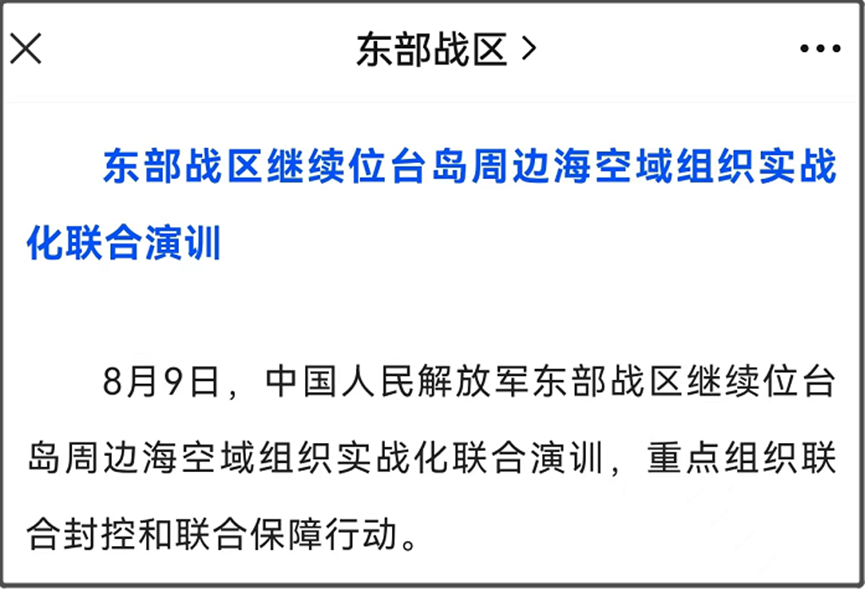 所以,在8月2日晚上,我虽然在看到对方落地后,也是感觉比较失落,心情不太好,但我也是第一时间就看到新华社发的“环岛”军事演训的公告,在仔细思考后,我也是很快察觉这次军事演训的重要意义,所以就比较快调整好自己的情绪,从失落中走出来。