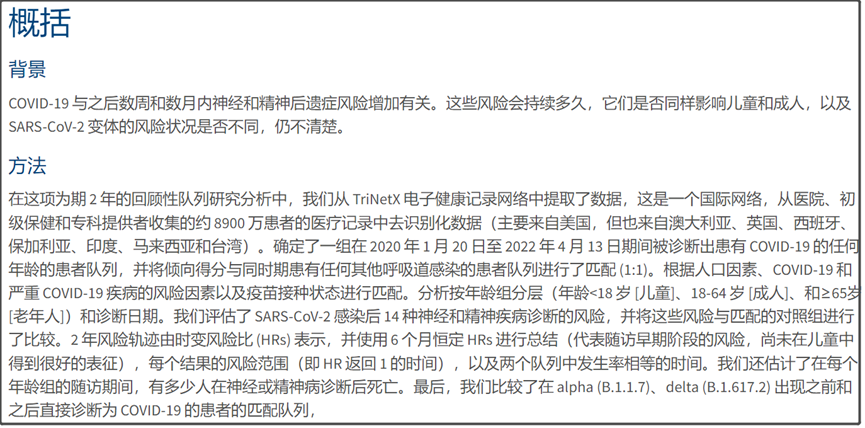 从中去研究感染新冠病毒后,14种神经和精神疾病诊断的风险,来分析感染新冠病毒后,是否会增加一些神经和精神疾病的风险概率。