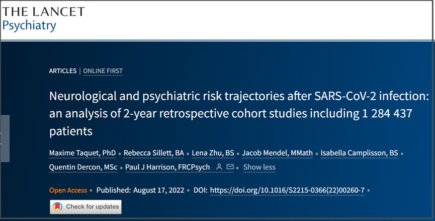 研究报告的主要撰写人、精神病学教授保罗哈里森说:“这项结果表明,与新冠病毒感染有关的新的神经系统疾病,可能会在疫情消退相当长的时间后发生。”