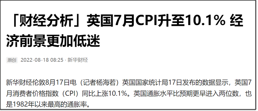 较早之前,英国公布的CPI也升至10.1%,成为G7国家里首个买入通胀两位数的国家。