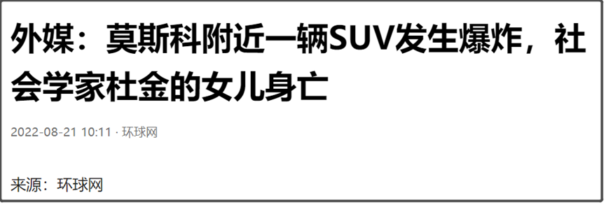 今天就又一个消息,俄罗斯一个著名社会学家杜金的女儿所坐的SUV发生爆炸身亡。
