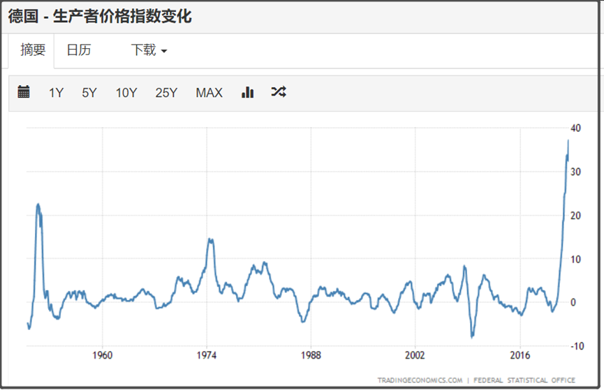 历史上,哪怕二战后的重建时期,德国都没有面临过这么高的PPI增速。