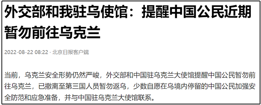 所以,这个提醒更多是让人暂勿前往乌克兰,也没有想美国那样,敦促公民立即离开乌克兰。