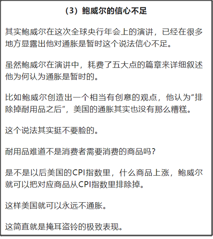 所以去年鲍威尔在杰克逊霍尔的演讲,我也是写了一篇文章,来进行全方位抨击。