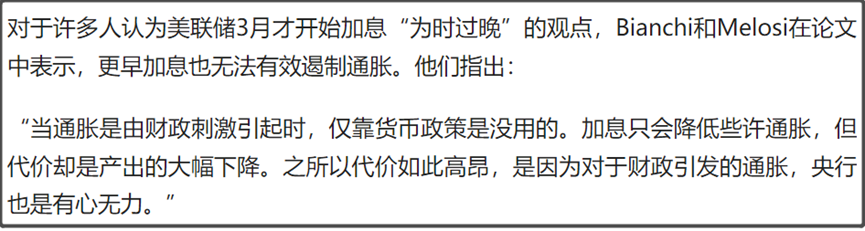 比如,有芝加哥联储的人就在这次年会上发表一篇论文认为,当前通胀中有一半是源于财政刺激。