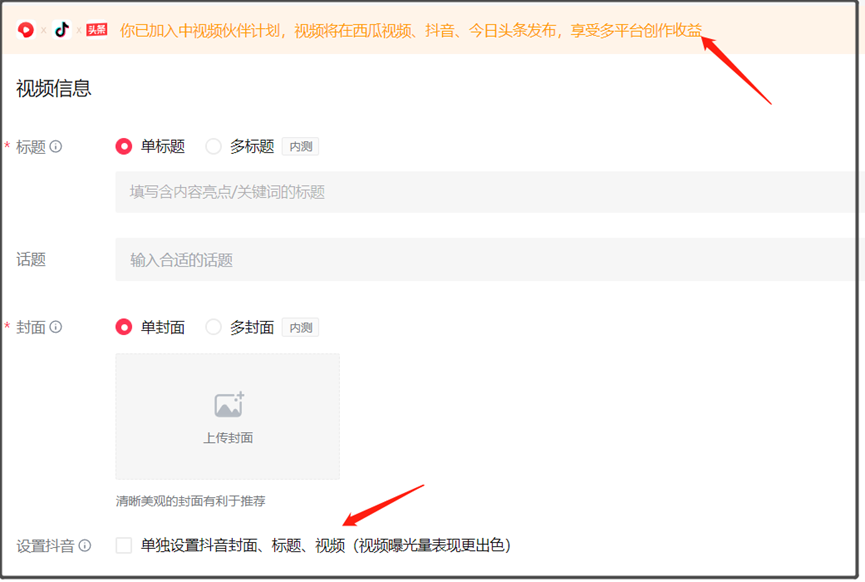 达到这个要求,我们可以在西瓜视频的后台,上传视频时,同步拆分成3个竖版视频到抖音。