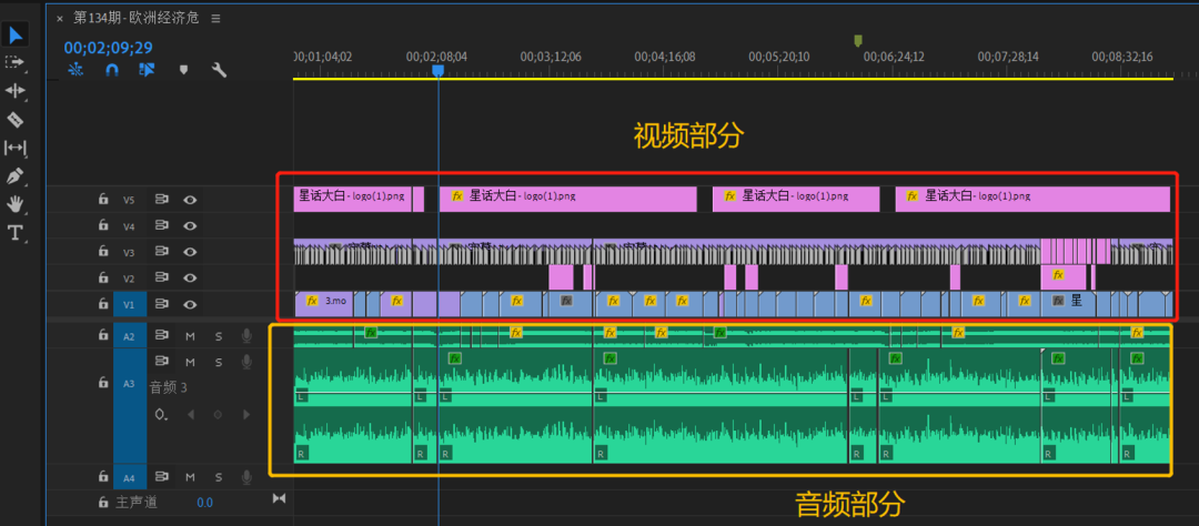 这样不停拼下去,让视频画面和配音内容对应上,并最终填充满整个配音内容。