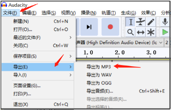 导出的时候,有时候你点击了没反应,是因为你的选择框高亮区没有在剪辑区。
