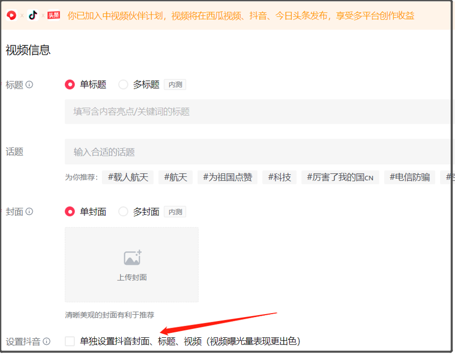 所以,现在横版视频要发抖音,正常都会通过“中视频伙伴计划”去发。