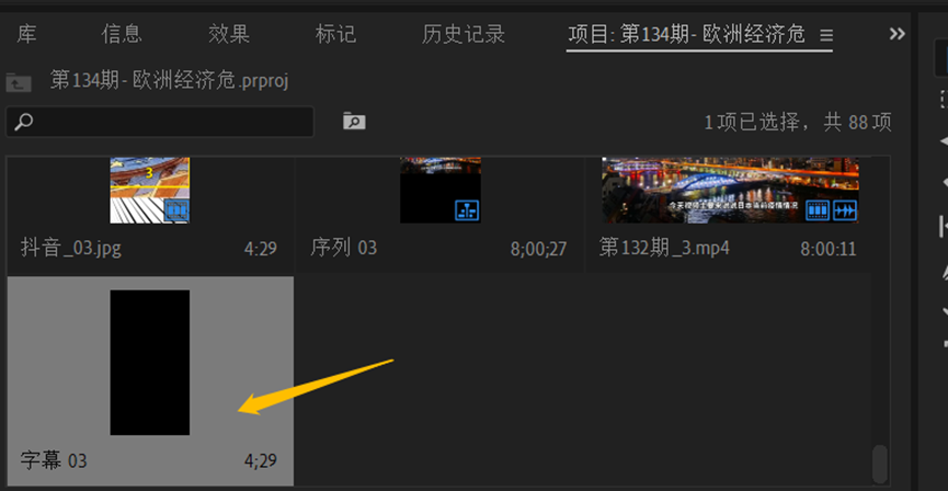 在分割成3个后,我们去左侧的项目区,点中这个序列,然后右键点击复制。
