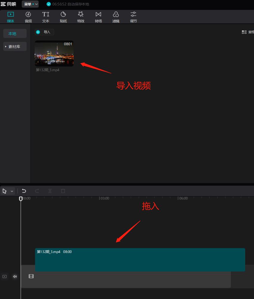 直接把这个字幕文件,拖入右侧的剪辑区里。