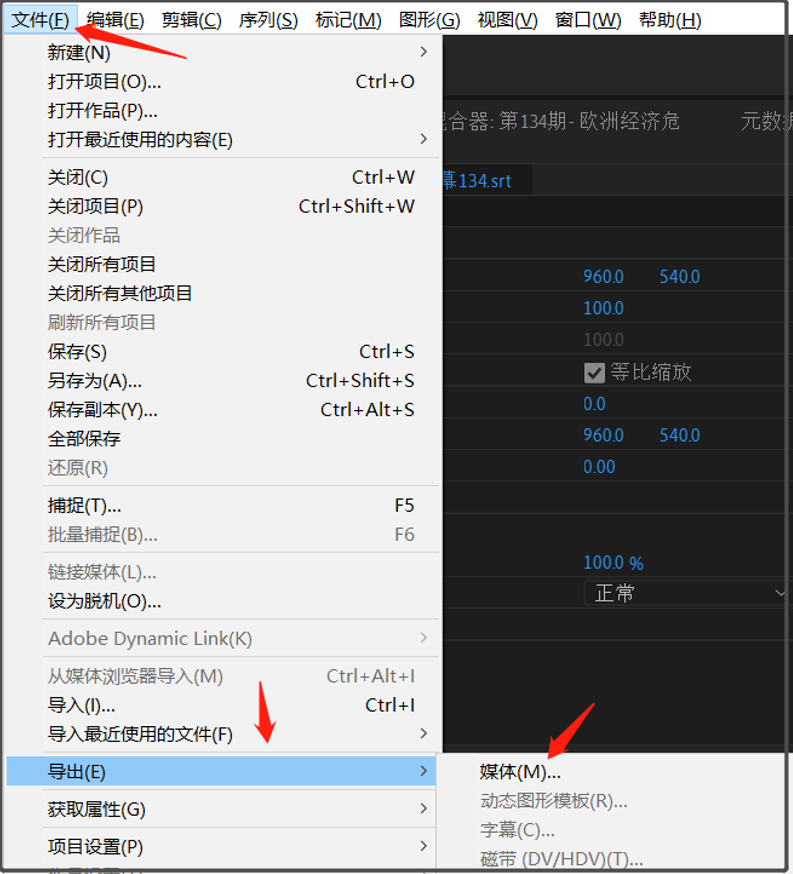具体是点左上角的“文件”→点“导出”→点“媒体”