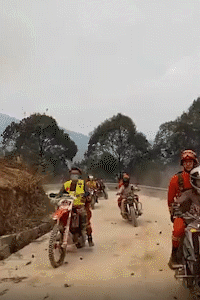 比如下面这张动态图,就是云南省森林消防总队跨省前来支援的时候,摩托大军载着专业救援人员上山。