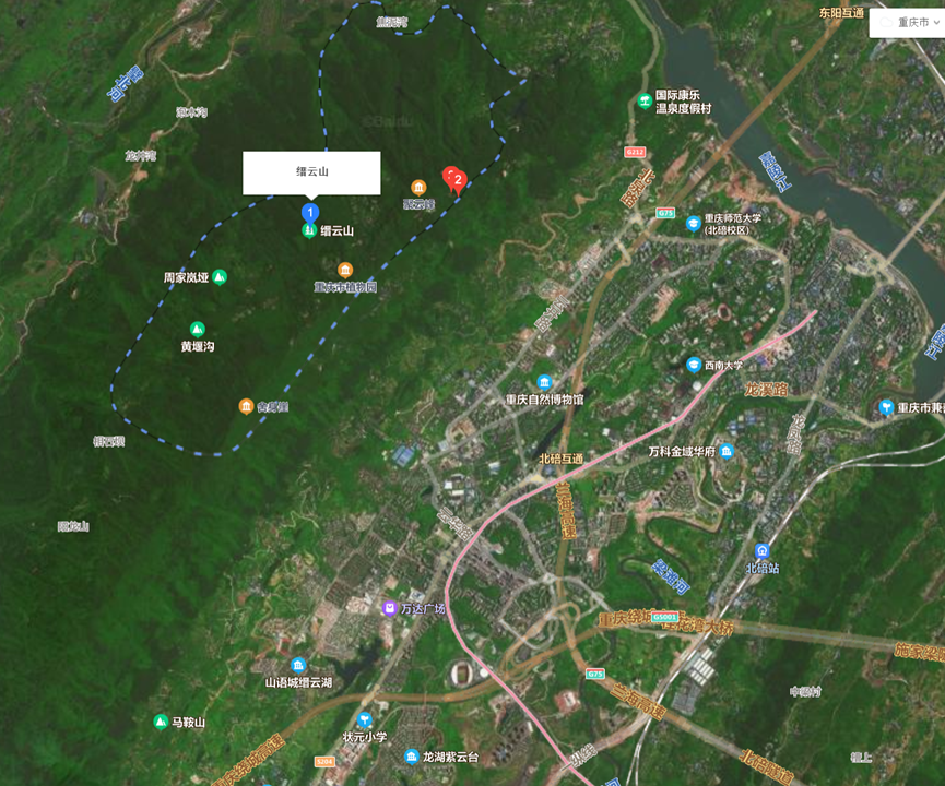 而且从地图上可以看到,重庆作为有名的山城,缙云山也是紧挨着重庆北碚城区,如果山火越过隔离带,后果不堪设想,甚至可能危及城区安全。