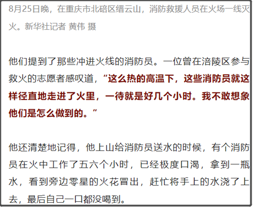 而是在最危险火场里动辄连续奋战好几小时的专业消防救援人员和森林武警。
