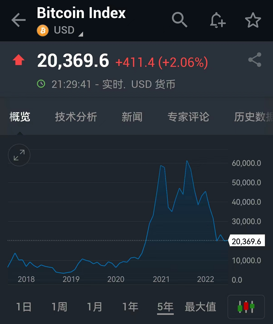 比特币在2021年11月创下6.7万美元的历史高点后,随着美联储开始激进加息,今年比特币价格也是一路暴跌,现在最新价格只剩下2万美元,已经跌没了70%。