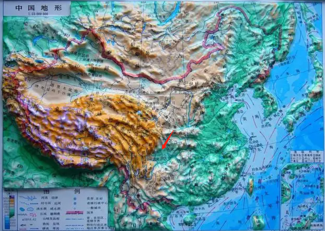 从立体的中国地形图,可以比较明显看出四川地形的特殊。