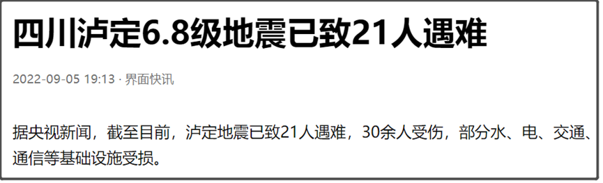 目前来看,泸定县城传出来的一些实拍画面,没有看到大范围的房屋损伤,泸定县城的情况应该还好,这次主要受灾地区还是以乡镇为主。
