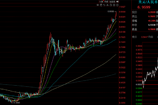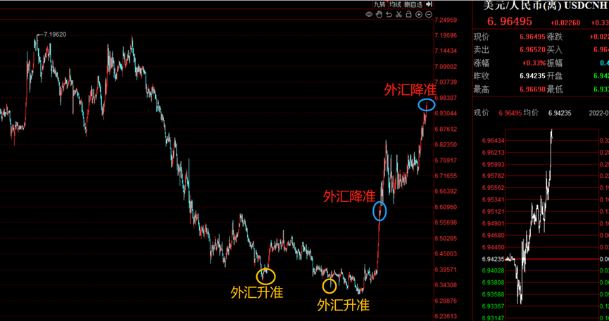 在昨天央行宣布外汇降准后,今天汇率仍然出现贬值走势,一度摸到了6.96,距离7大关也越来越近了。