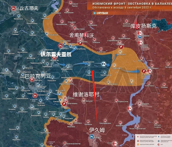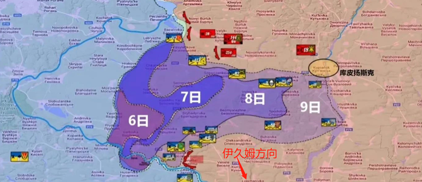 也就是,一直到9月9日,乌军是打到了右上方的库皮扬斯克止住。