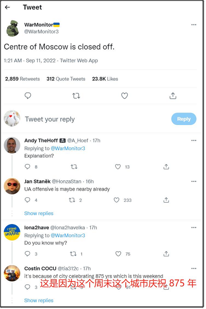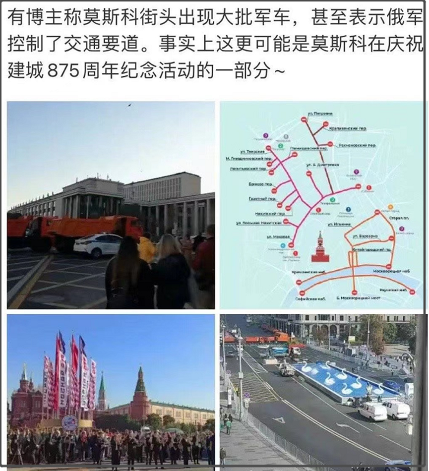 结果,莫斯科方面在纪念城市建立875周年,因为外网推特上一个没有可信来源的推,结果就被国内挺乌派大量转发,并开始编造各种离谱版本的“政变”过程。一副给人感觉普京明天就要被赶下台的模样,确实有点离谱。