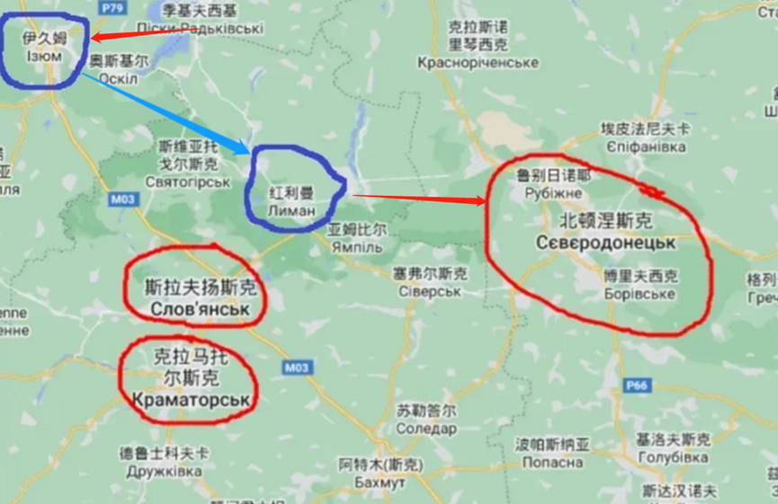 而且我们从中立的角度来看,伊久姆确实是一个战略重镇,所以俄乌冲突爆发后,俄罗斯是很快就先拿下伊久姆,在从伊久姆为根据地,往右下去拿下另外一个战略重镇红利曼,最后才依托红利曼,拿下了北顿涅茨克。