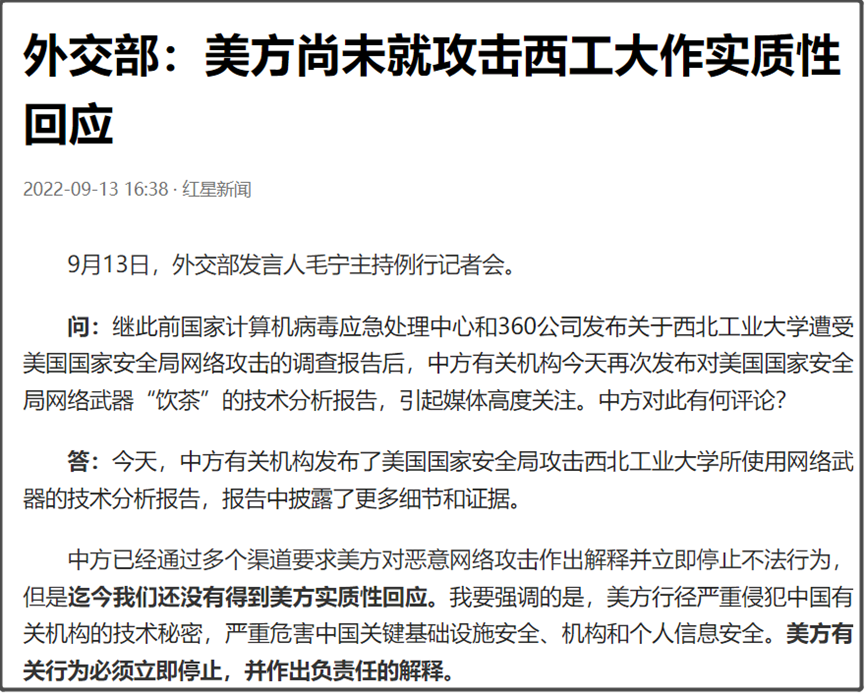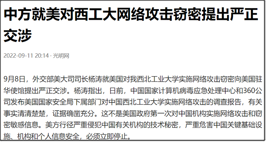 这次,我们公开如此详细的美国网络攻击的调查报告,我们外交部也已经就此向美国提出严正交涉。