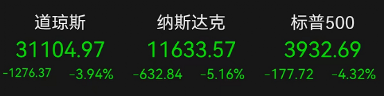 道琼斯指数再现千点大跌,跌幅达3.94%。