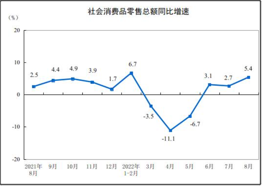 但8月,我们整体经济数据有进一步恢复回暖的态势,包括消费同比增速也回升到5.4%,这个是比较超出市场预期的。