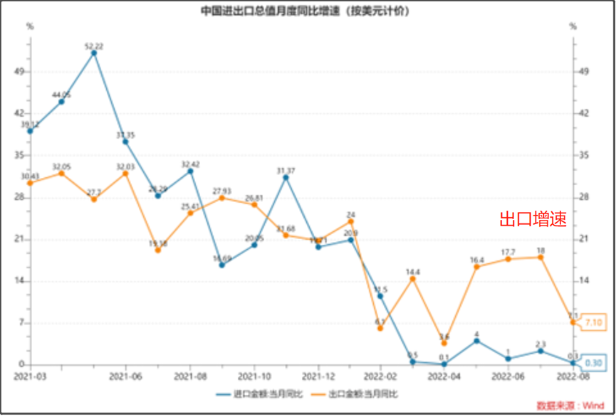 这个也跟8月人民币汇率出现一波贬值有关,不过即使以人民币来计价的话,8月中国进出口总值同比增长8.6%,这个增速也依然远低于7月的16.6%。