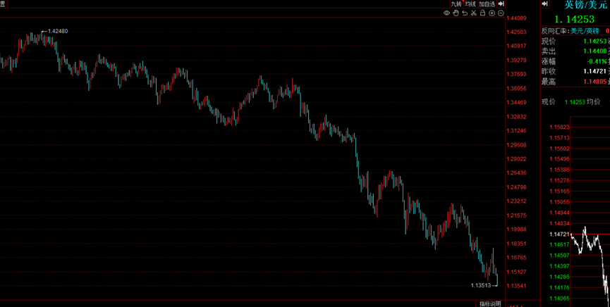 周五晚上这个数据一出,英镑马上出现一波贬值,一度跌破了1.14。